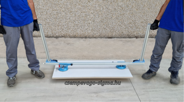 Az Ergo-Lift csempe mozgatására és lerakására szolgáló berendezés 60x60cm-től 180x80cm-ig terjedő méretekkel.